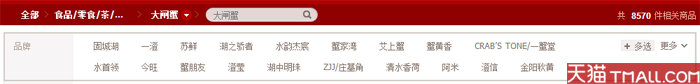 天猫 大闸蟹品牌200个 商品8570个